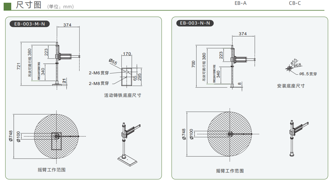 - 支撐桿和搖臂剛性按4倍安全系數(shù)設(shè)計,剛性高,不易變形,長期使用依然保持較高垂直度。吊塊和限位塊調(diào)節(jié)方便,可調(diào)范圍超過300MM,適應(yīng)性強(qiáng)。