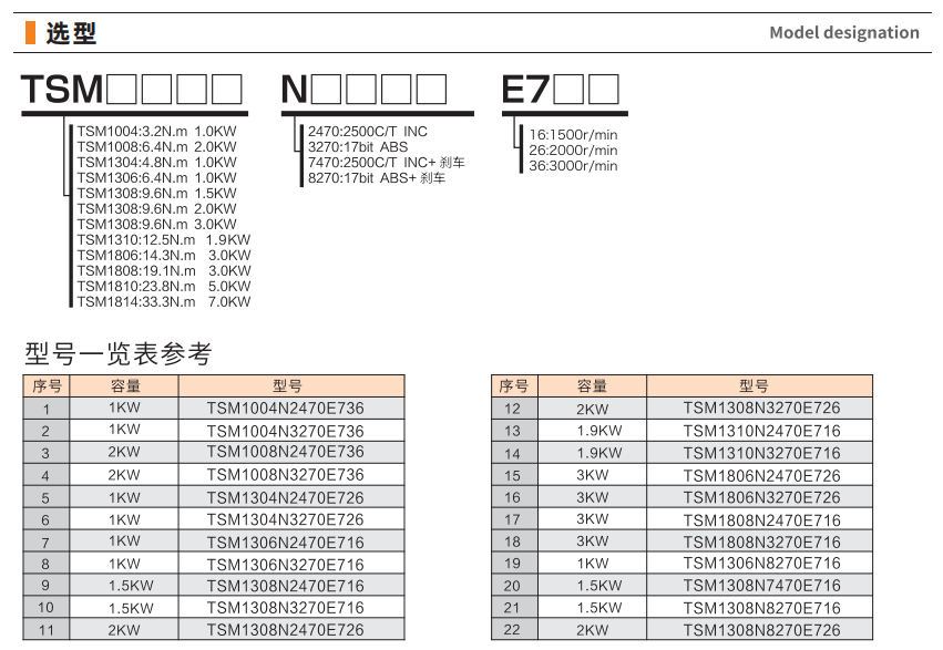 - 高速正反轉(zhuǎn)加減速時間短,滿足產(chǎn)業(yè)設(shè)備需求 1500rpm~3000rpm3大系列規(guī)格機種全,扭矩大,過載能力高